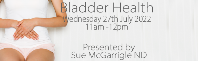 Wednesday 27th July – Bladder Health (Sue) All parts of the urinary tract, the kidneys, ureters, bladder, and urethra must work together for normal urination. This webinar will focus on bladder health and nutritional support for the urinary system which affects bladder function. 1 hour CPD with Sue McGarrigle ND Time 11am Registration link https://us02web.zoom.us/meeting/register/tZcoc-yvqTojGdzHSEGgfIXMLe7FE40uryrD